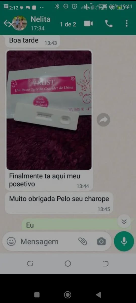 Eu sofria de miomas que me faziam não conceber, há 3 meses que faço o uso desse Xarope e finalmente consegui o meu positivo, fui na fé. Deus acima de tudo🙏🙏